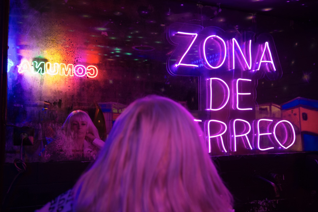 En el baño de un bar, dos amigas conversan entre humor e indignación sobre un insulto absurdo recibido en la calle, reflejando con ironía la normalización del acoso cotidiano.